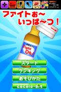 栄養ドリンクのふたを勢いよく飛ばして距離を競うゲームです。