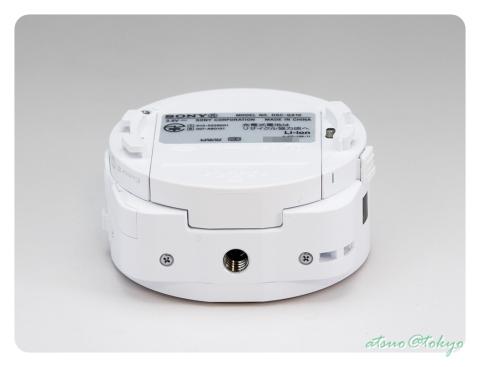 底面中央に三脚穴と、右下にストラップ取り付け部があります。