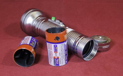 まず、本来単一電池 2本で使うのですが単三電池を単一電池として使うアタッチメント(スペーサー)が付属しており、単三電池 2本で使うことが出来ます。