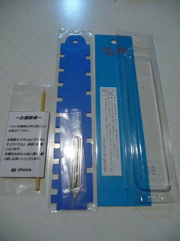 丁寧なことに、バンドと簡単なバネ棒外し、クリーニング用のヘラ、バンド用スケール、写真には写っていませんがバンド交換方法のマニュアルも付いていました!