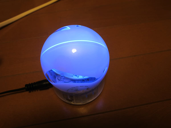 非接触式充電方法なので、ボールをスタンドの上に置くだけで充電が始まります。