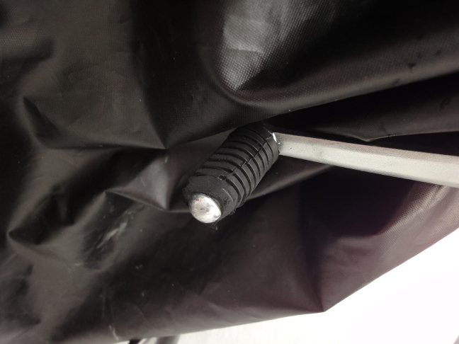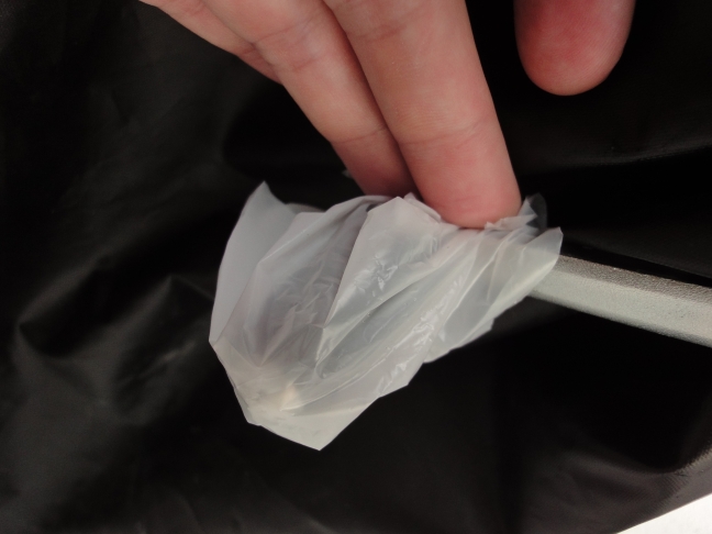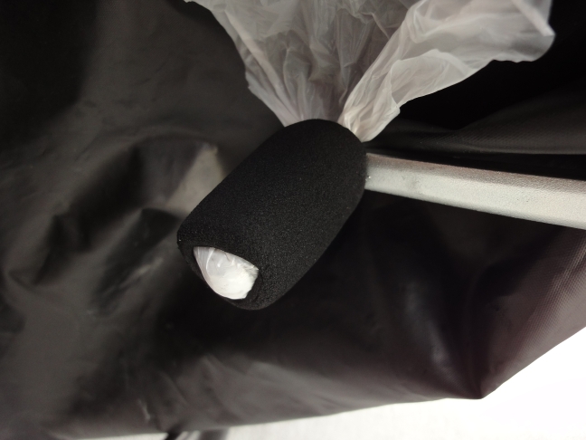 装着させるには、三脚の時と同じようにビニール袋をシフトに被せて滑り易くし、 水に濡らしたスポンジカバーをグイグイっと捻じ込む作業になります。