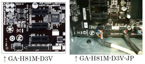 使われている「GA-H81M-D3V-JP」とでは、仕様が異なるのでしょうか?
