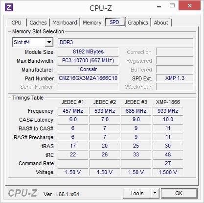 ・1866MHz(CL10) : CORSAIR CMZ16GX3M2A1866C10R