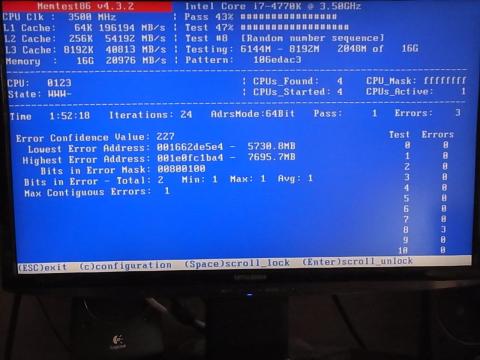 初期不良で交換してもらってからmemtestかけると問題ありませんでした。