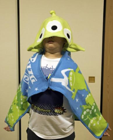 フリース地のブランケットで、エイリアンのフードが付いています。