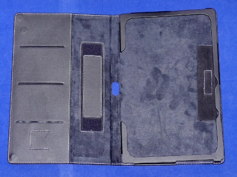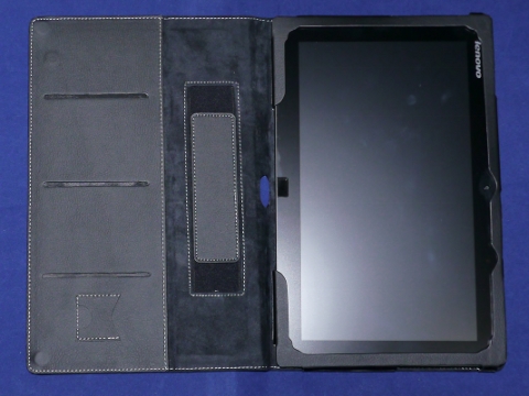 内側にはカードやメモなどが挟めるスリットや、手を挟むバンドなどが設けて