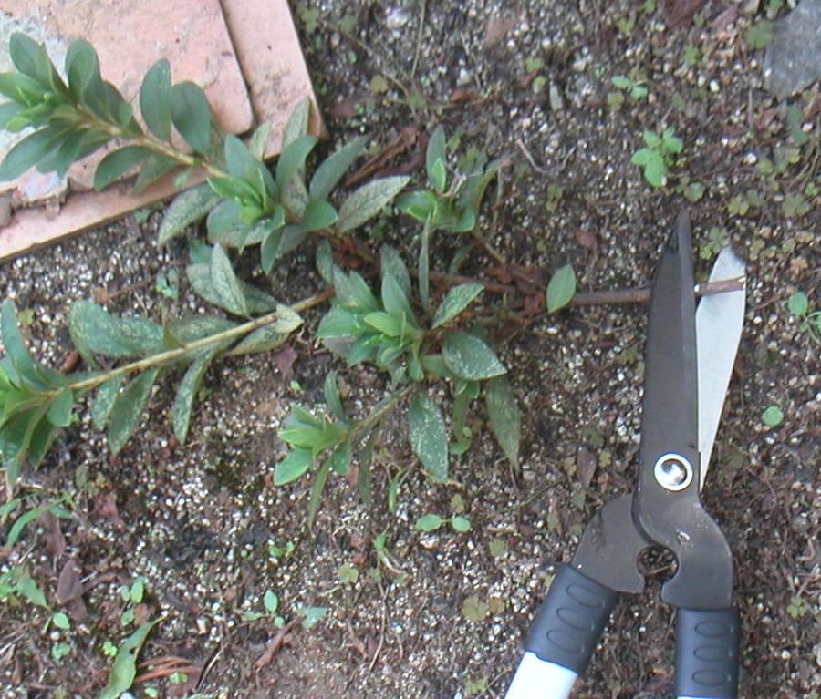 雑草を抜くのも大変ですが、庭木もいつの間にか隣の敷地に訪問の兆し。