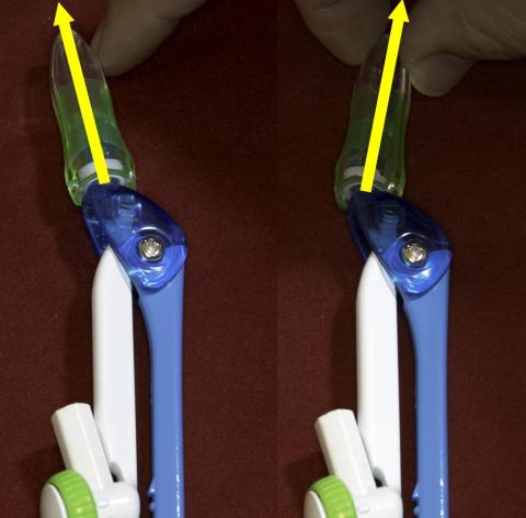 昔の二等辺三角形の頂点を握るタイプなら、目標とする円の半径1/2の軌跡になりますが、これみたいに、少し握りを外側にすることで小さい円も書きやすそうですね。