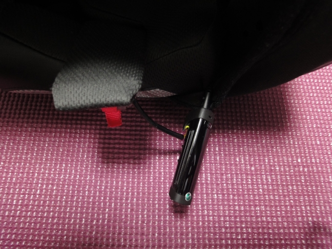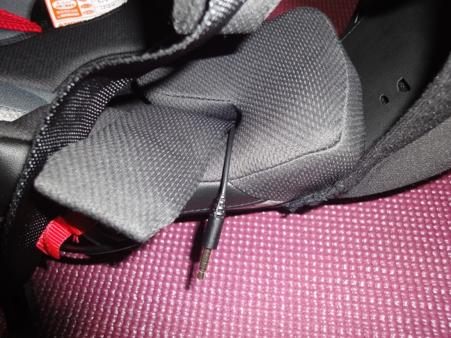 ステレオミニジャックのケーブルが短いので、ヘルメットの外にギリギリ出るくらい。