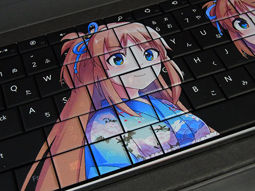 またプリントは質感こそ程ほどなものの、なんかすげえガッチリしたプリントがされている。ひょっとしてコミケで頒布された痛キーボードと同じ焼付け塗装がされてるんじゃないだろうか?