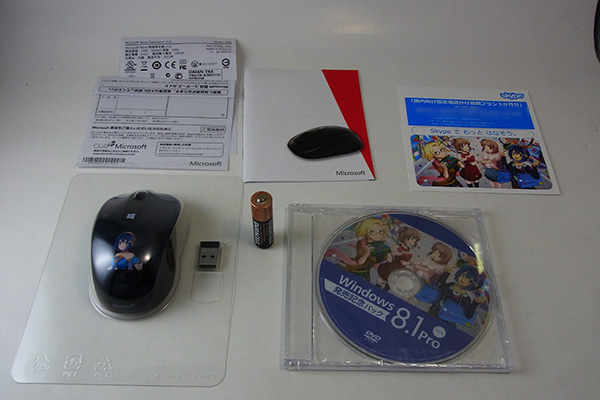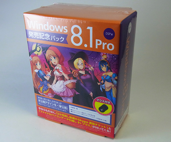Windows8.1発売記念パック。今回のパック、ぱっと見「発売記念パック」と上位版の「ファミリーパック」の2種に見えるのだが、実は特典的には下位にあたる「発売記念パック」にのみマウス付属バージョンがある妙な組み合わせ。