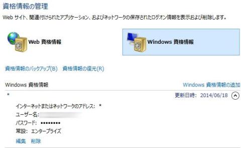 資格情報マネージャーを開き、Windows資格情報に次の設定で追加します。