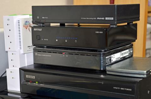 上からIO-DATA 1TB HDD , 当機 , ピクセラ PIX-BR320 , IO-DATA HVT-BCT300L