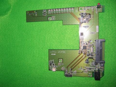 画像上部 LED表示IF 、下 USB端子、右 STAT HDDコネクター、USB/SATA変換IC