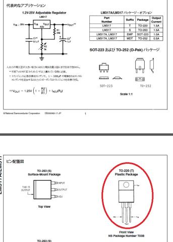 LM317Tの電気的特性とピンアサインは以下の通りです。