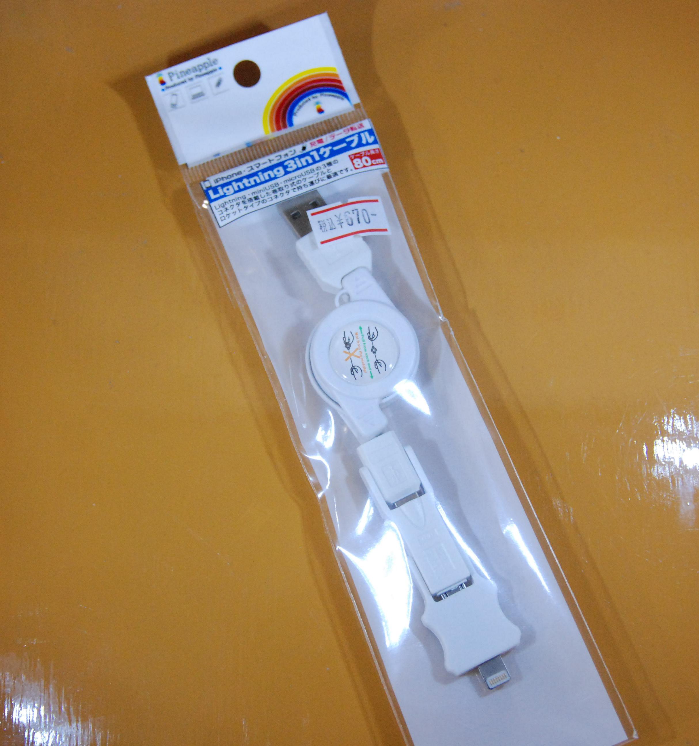 miniUSB、microUSB、Lightningに3方繋がるコネクターです、