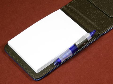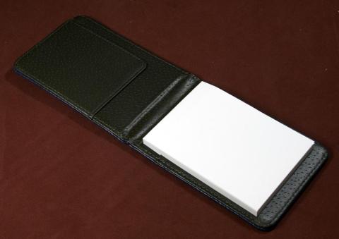 カバーを開くと横から挿し込むタイプのポケットと A7サイズのメモ帳が付属しています。