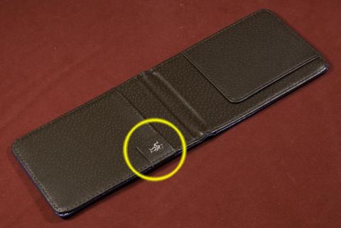 メモ帳を外すと下にペンホルダーが付いており、アキュアスキュータムのロゴであるラクダマークが箔押しされています。