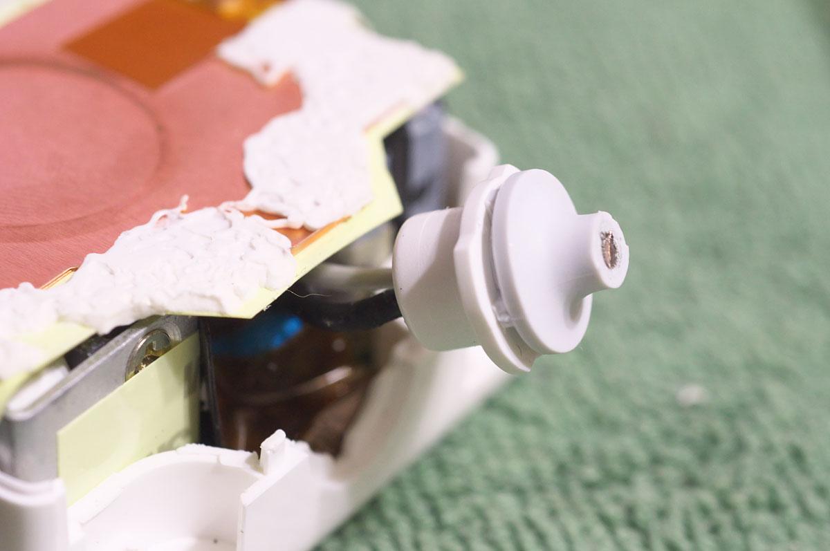 ここのパーツが長く、鞄の中で当たってケーブルが折れてしまっていたので、短く切断しました。