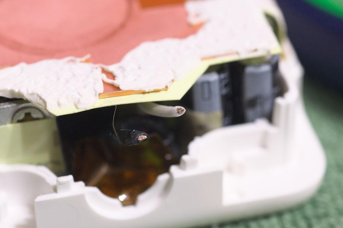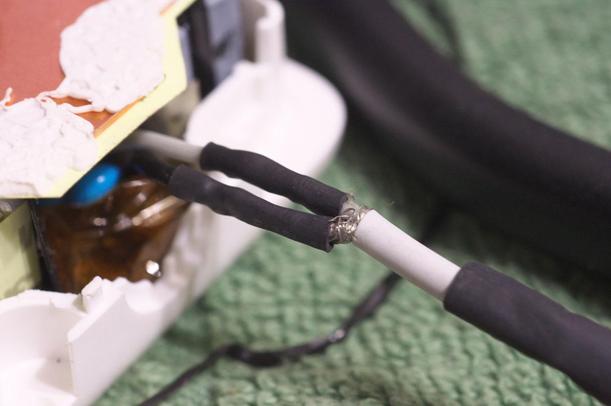 左側に出ている黒いケーブルは、最初に修理したもの。