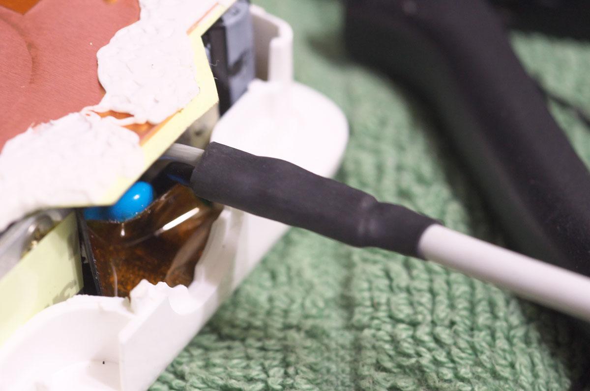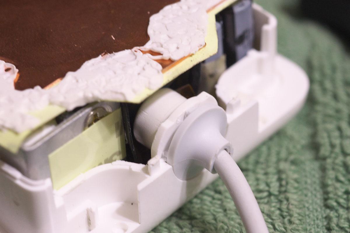最後に、接着剤を使ってACアダプタのカバーを接着します。