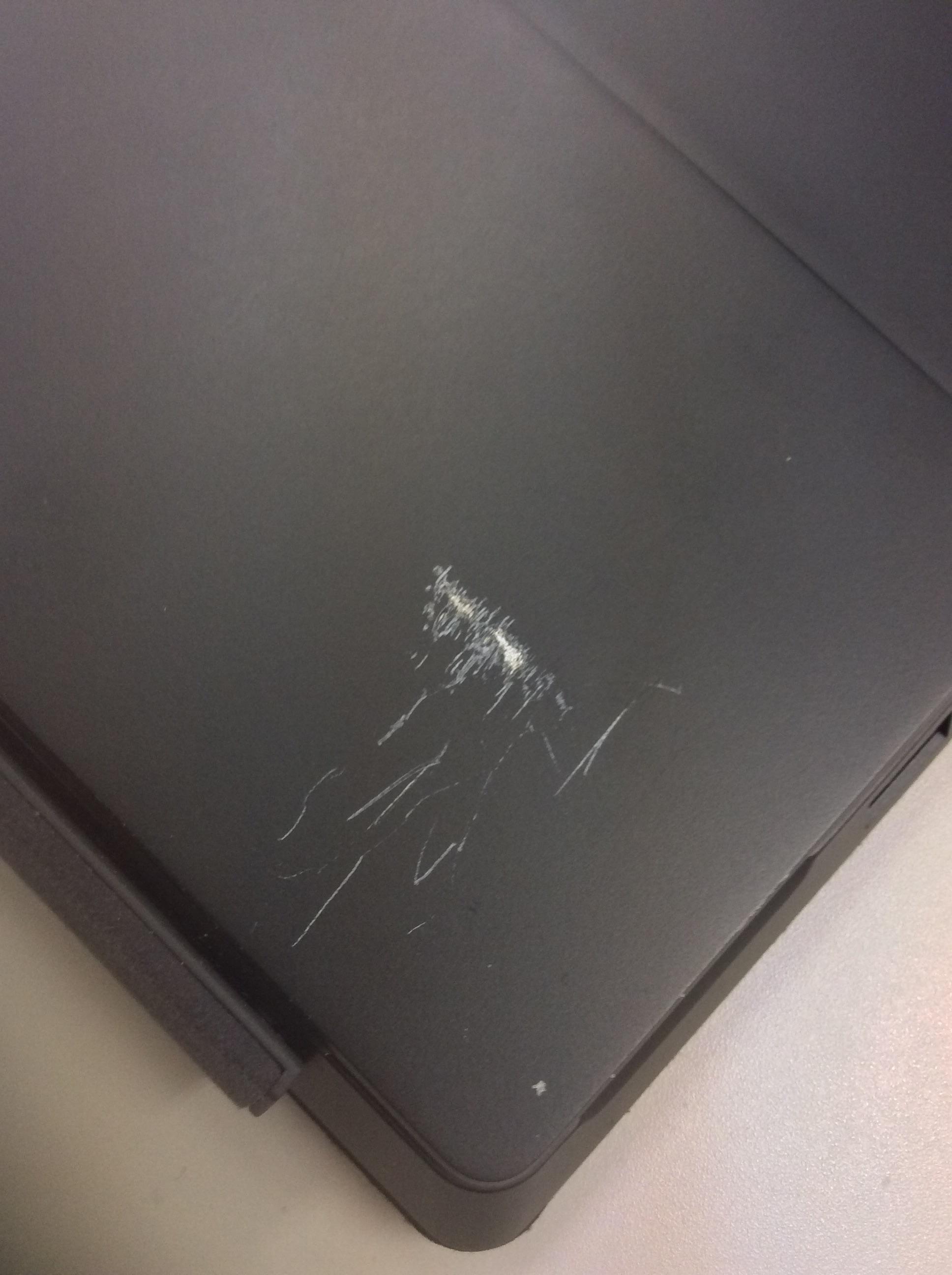 かなり堅牢な処理のはずなんですが、そして革のバッグに入れてるだけなんですが、写真のようなキズが入りました。