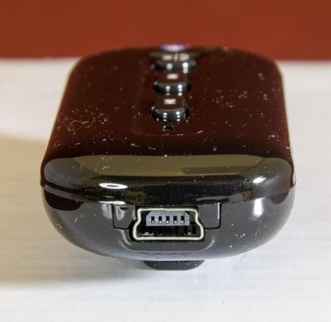 下部には電源入力用の USB Mini端子が付いています。最近は MicroUSBの充電ばかりなので、ちょっと残念なところです。