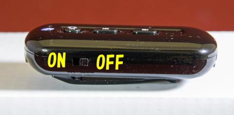 電源の入/切はサイドにスライドスイッチが付いており、見えづらいですがボタンの下に「ON/OFF」が書いてあります。