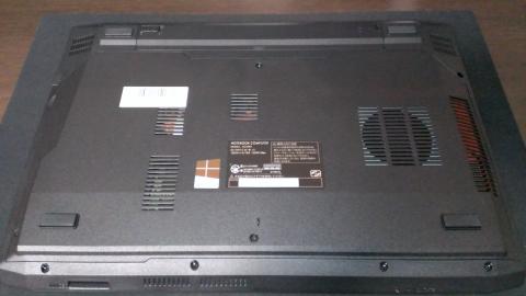 中央にシリアルなどが印刷されたシール、右には大口径のCPU,GPUブロワファンの吸気口。