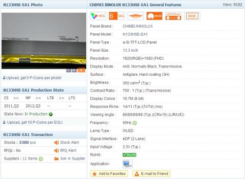 ここで確認すると、Chi Meiという会社のN133HSE-EA1というモニターです。