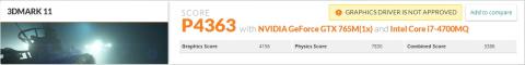 スコアはP4363という結果で、デスクトップPC用GPUと比較すると、GTX650Tiのスコアにかなり近いもので、GTX650Ti相当の性能があることを確認できます。