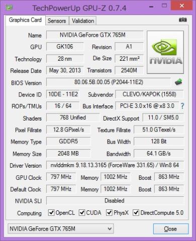 次にこの機種最大の売りであると思われる、Nvidia GeForce GTX765M