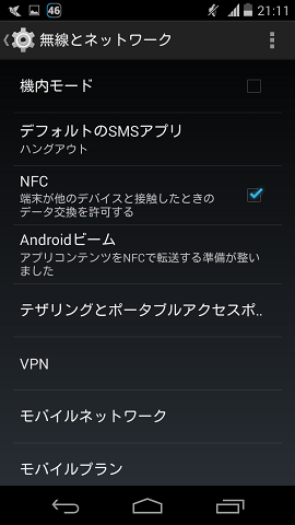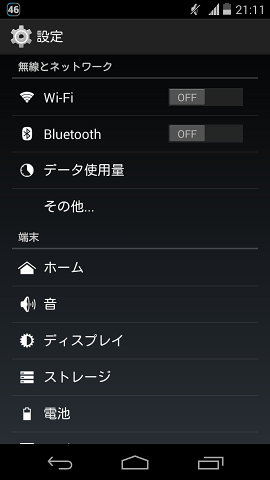 KitKatを搭載しているのでその辺りが設定に影響するかどうかも確認します。