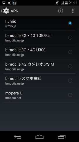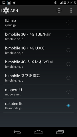 を選択するようになりますが、今回使用するNexus 5やAndroid 2.3以降の端末・LTE対応