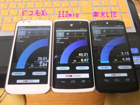 もあるのか、docomo XiやIIJmioはわりと高速で通信できているようです。IIJmioは