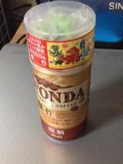 とこんな感じにwandaの缶コーヒーを口にくわえています。