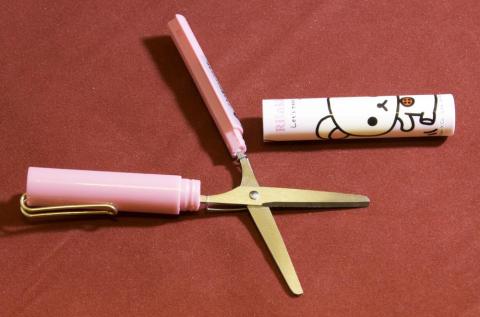 太目のペンのようなキャップを開けるとはさみが飛び出してきます。