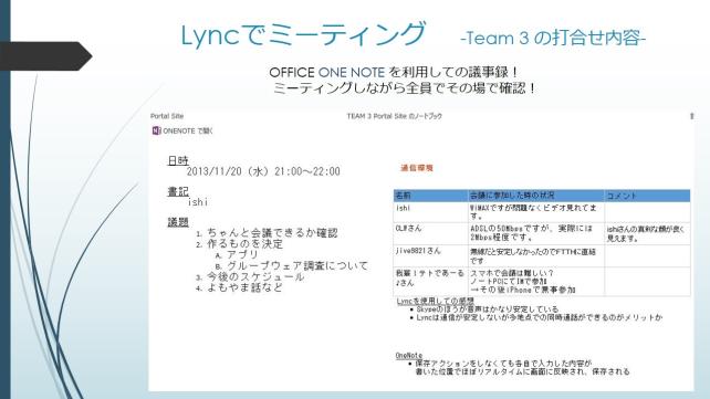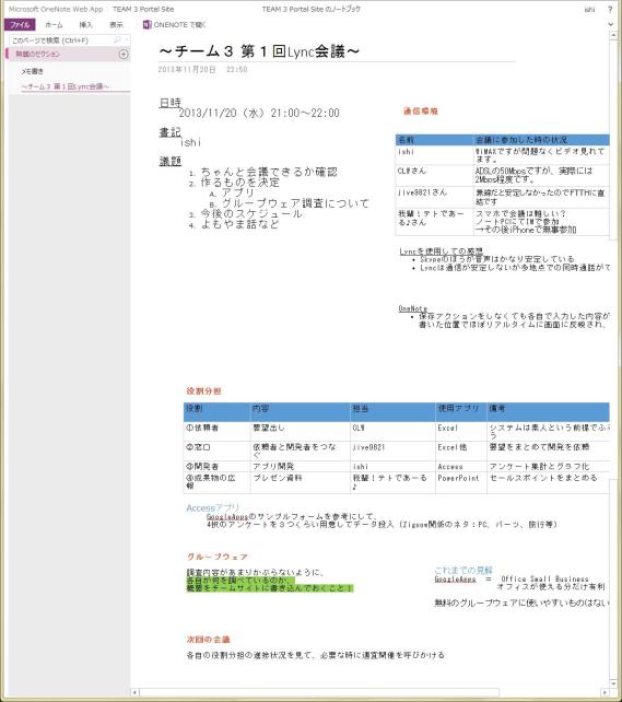 Lyncによる1回目の会議で、OneNoteについては複数人によるリアルタイム更新を経験しました。