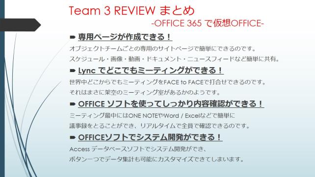 確かに、我がチーム3の活動には仮想のOfficeが「そこに」あったと思います。(^_^)