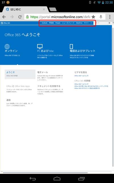 一方、Nexus7で表示した場合、最初のポータル画面には上部にリンクがありますが、
