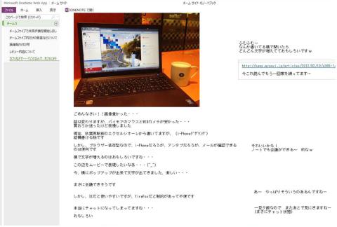 テンプレートがいくつか用意されているので、それを使うとさらに便利に利用できます。チーム内のノートブック(OneNote)を眺めていたら、新しいノートが増え、hideさんがカキカキしている様子がリアルタイムで更新されて行く様子がとても面白かったです。ためしにそのノートに書き込んでみたら、向こうにも同じく見えたようです。