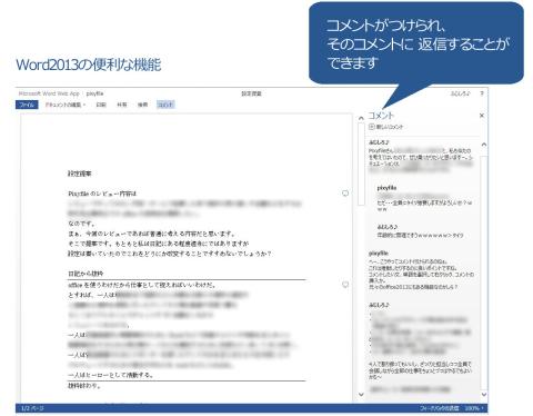 まるでチャットのように、いろいろな情報をやり取りすることができ、便利に思えました。【Word2013】