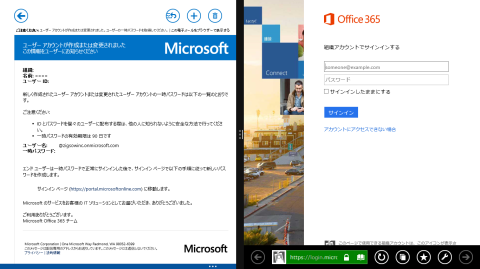 Win8.1で便利になったスナップ表示で、メール画面とサインイン画面を2分割表示して