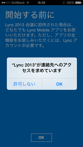 初回起動時に、連絡先へのアクセスを求めてきますので、今回は保留して次へ
