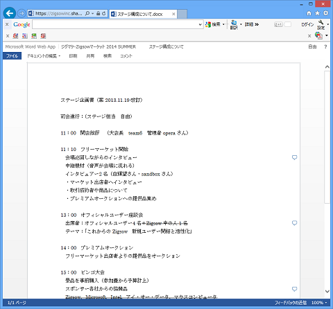 担当する企画書については、ドキュメントにWord文書で作成します。