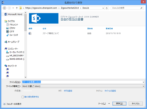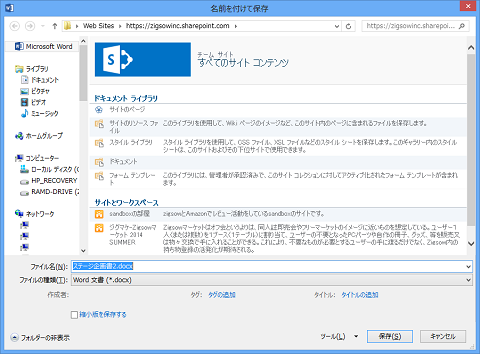 デスクトップアプリ(Word2013)で作成した文書は、直接サイトにUpすることが