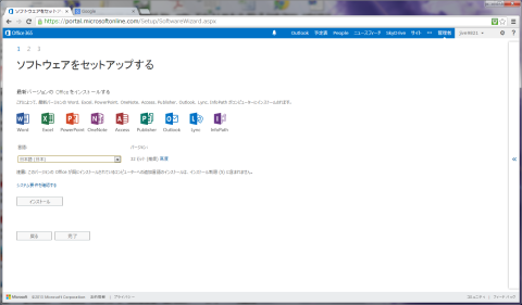 但し若干の制約があり、通常のメディアからのインストールでは、利用するアプリケーションを個別選択出来るのに対して、Office 365提供版では全アプリケーションをインストールする以外の選択肢がありません。通常はこれで問題ないのでしょうが、HDD(またはSSD等)の空き容量が少ないモバイルPCなどで利用する場合には注意が必要と思われます。