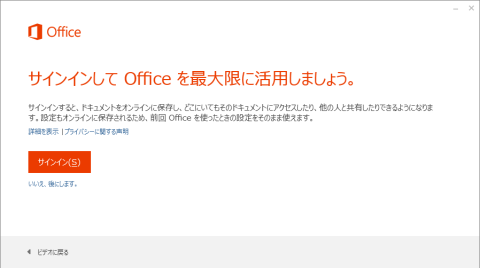続いてサインインしろと言ってくる。まあ当然か。アプリケーションだけ起動してもサインインできなければインストールできない仕様というのは理にかなっている。