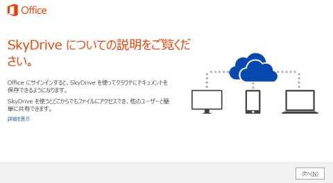 サインインが完了したら新機能の紹介としてSkydriveのことが書いてあった。時代はクラウドってことだろうか。